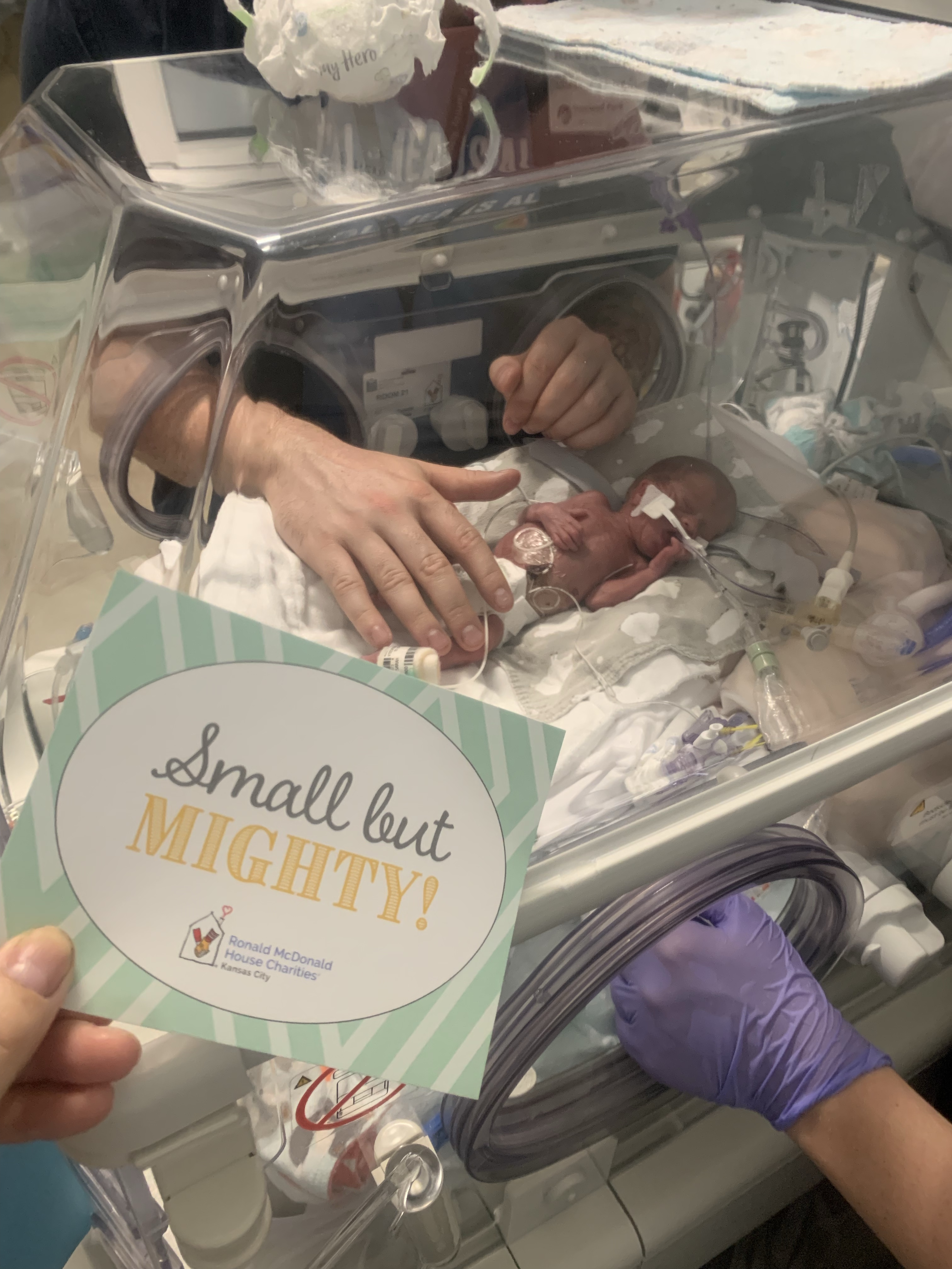 We have been checking on you in the mornings. You had a bad day where your oxygen level wasn’t good, you were anemic, and your bilirubin was high. So they switched you to a different ventilator, gave you a blood transfusion and put a blue light on you. But when we checked this morning, your blue light was back off, and they switched you to a harder ventilator to eventually wean you off a breathing tube, and your labs look good.